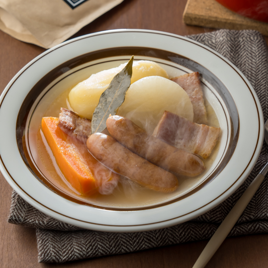 ことこと野菜を煮込んだような優しい味わいに仕上げました。朝忙しい時にマグカップに溶いたコーンポタージュをどうぞ。